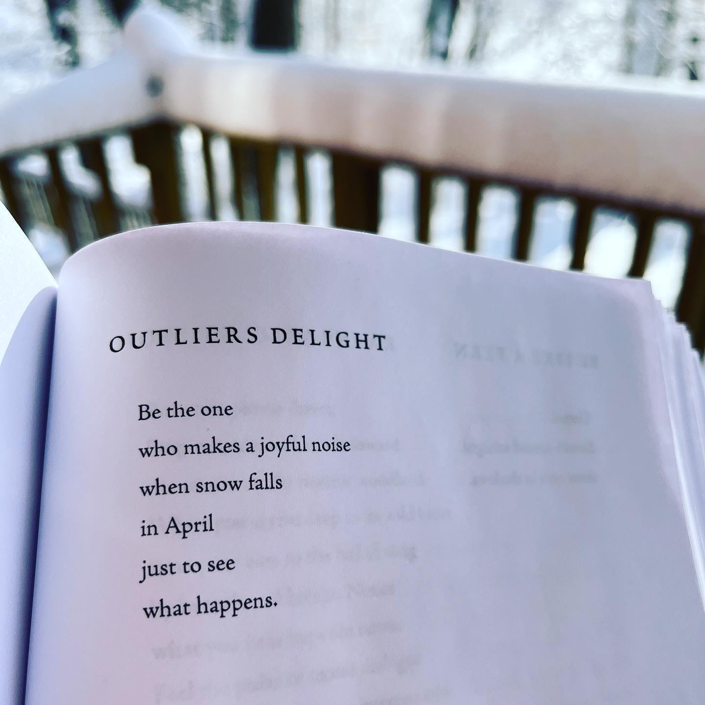 Also, tonight it’s snowing, and in April, embracing that often makes you an outlier. And being one of those is often another way to help teach the world to survive.